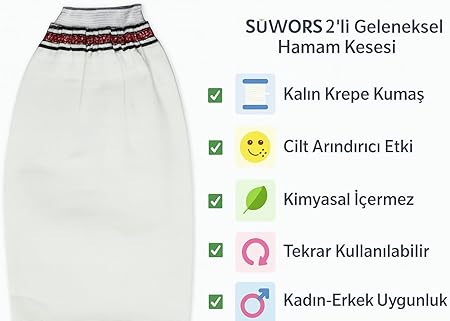 Geleneksel Hamam Kesesi – Kalın Krepe Kumaş – Lastikli Exfoliating Banyo Lifi – Cilt Arındırıcı & Peeling Etkili – Kadın Erkek İçin Uygun