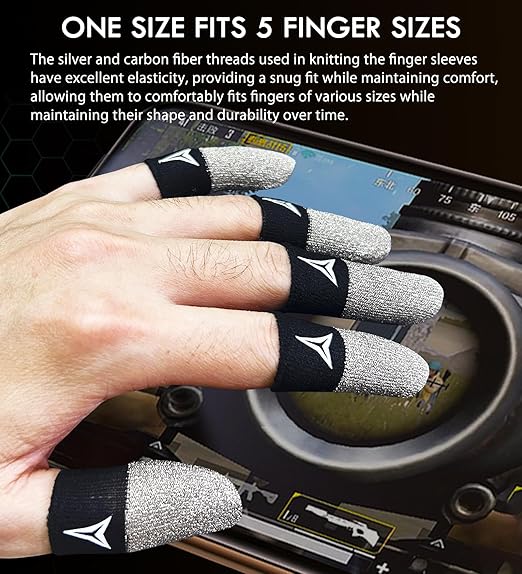 Geliştirilmiş Versiyon Görünür Saf Gümüş Fiber ve Karbon Fiber Profesyonel Model Oyun Parmak Kolları, Lastik Bant Yok, Maksimum Dokunma Tepkisi, Rahat uyum, Terletmez, Tüm Dokunmatik Ekran Cihazlarına