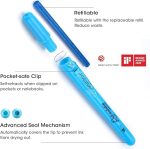 Tek elle kullanım sayesinde kapak çıkarılmasına veya kaybolmasına gerek yoktur. Patentli conta tasarımı, mürekkebin asla akmasını sağlar. Büyük klipsler sayesinde bu fosforlu kalemler çantada rahatça taşınabilir ve yuvarlanmayı önler.