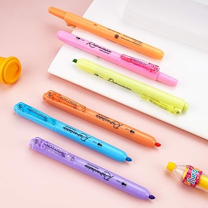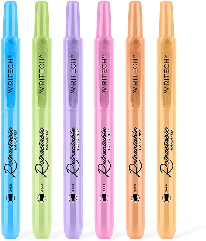 Geri Çekilebilir Fosforlu Kalemler Çeşitli Renkler: Keski Uçlu Tıklama Estetik Vurgulayıcı Kalem Paketi Çok Renkli Mürekkep Günlük Tutmayı Vurgulamak için Akmaz Smear (6 karat Pastel)
