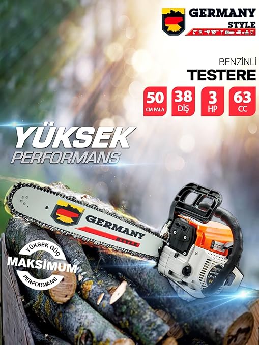 Germany Style Alman Benzinli Testere 15 Hpx 63cc Ağaç Odun Dal Kesme Makinesi Motorlu Testere Yeni Nesil Motor 38 Diş