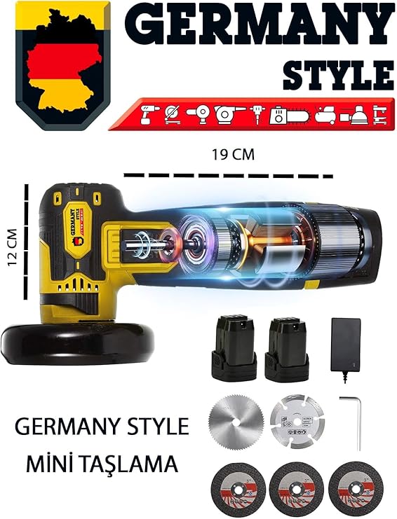 Germany Style Alman-MS365 Çift Akülü Açılı Şarjlı Avuç Taşlama Demir Kesme 75mm