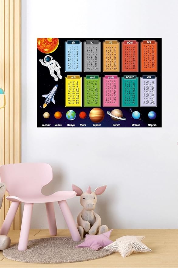 Gezegenler Ve Çarpım Tablosu Duvar Sticker Anasınıfı,Kreş,Çocukodası,Ilkokul