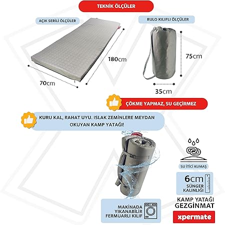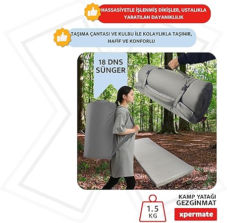 XPERMATE GezginMat Kamp Yatağı Taşıma Çantalı Kamp Matı Fermuarlı Kamp Minderi Çadır Matı Su itici Kumaş 70x180x6cm