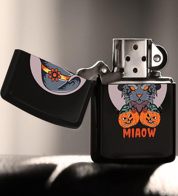 Gift Happy Halloween Tasarımlı Renkli Baskılı Siyah Benzinli Metal Çakmak