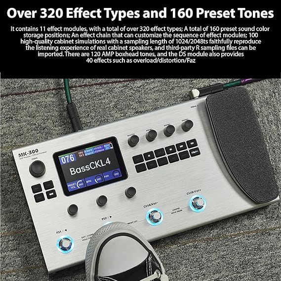 Olağanüstü Ses Kalitesi: Elektro Gitar Efektleri İşlemci, hem sahne performansları hem de stüdyo kayıtları için 120 amper model ve 320’den fazla efekt tipi ile otantik amplifikatör tonları sunarak 44.1kHz/24bit örnekleme oranı ve gelişmiş Ann Nöral Web modelleme teknolojisine sahiptir.