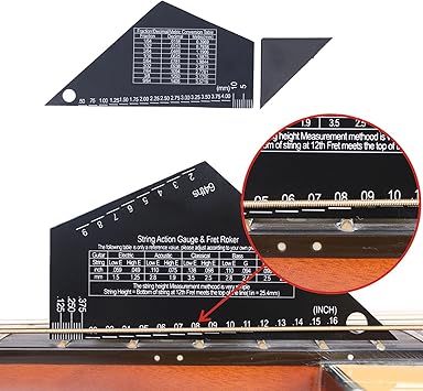 Gitar Teli Eylem Ölçer Cetvel Aracı, Paslanmaz Çelik Elektro Gitar Bas Parçaları Aksesuarları, Gitar Dize Eylem Ölçer Cetvel Aracı