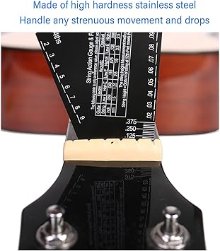 [Birinci Sınıf Paslanmaz Çelik]: Yüksek sertlikte paslanmaz çelikten üretilen bu gitar teli hareketli ölçüm cetveli aracı dayanıklıdır ve zorlu kullanıma ve düşmelere dayanabilir.