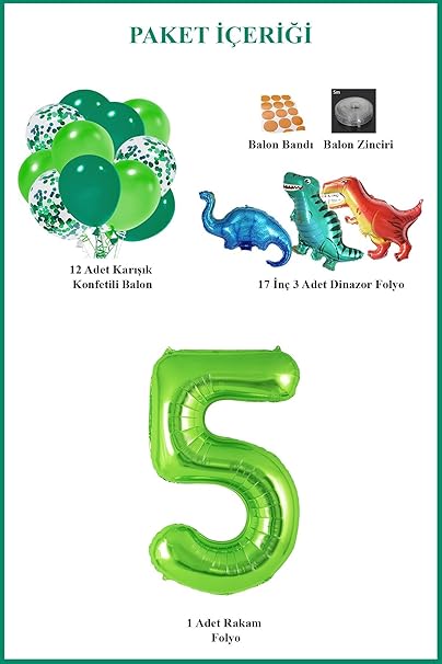 Gitti Dinazor Set; Rakam Folyo, 3 Adet Mini Dinazor ve 10 lu Balon (5)Uygunluk: 1 adet stokta