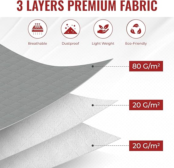 Kaliteli kumaş: 3 katmandan oluşan dokunmamış kumaştan üretilmiştir, kokusuz ve yüksek kaliteli, havalandırma ve depolanan eşyalarınız için yüksek koruma sağlar.