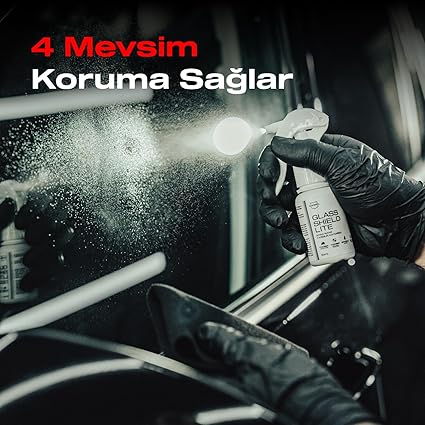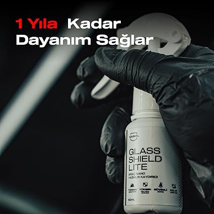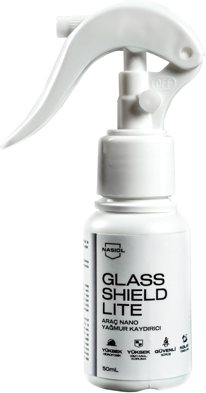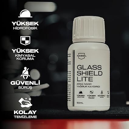 ✅ Nasiol Glasshield Lite, araç camları için nano yağmur kaydırıcı spreydir. Cam yüzeylerde koruyucu tabaka sağlayarak suyu, yağmuru ve diğer lekeleri iter. Böylece cam yüzeyler kolay temizlenebilir ve hidrofobik hale gelir.