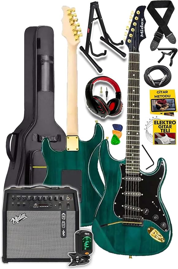 GLC-40GR-50AMP Elektro Gitar Seti 50 WATT Şarjlı BT Amfi Kulaklık ve Full SET