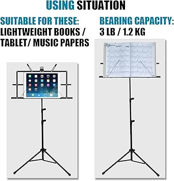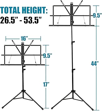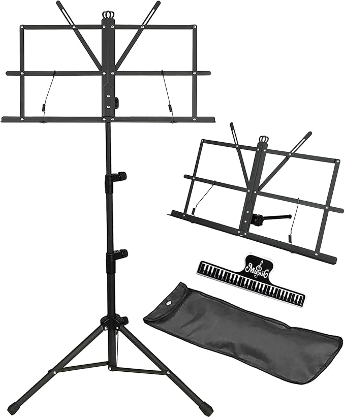 GLEAM Müzik Standı – 2’si 1 Arada Çift Kullanımlık Masaüstü Kitap Standı Katlanır Müzik Tutacağı Taşınabilir ve Hafif Müzik Sayfası Klips Tutucu ve Taşıma Çantası Enstrümantal Performans için Uygun