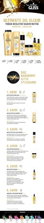 Saç kırılmalarını %95’e kadar azaltır. Ultimate Oil Elixir Şampuan ve Saç Kremi birlikte kullanıldığında
