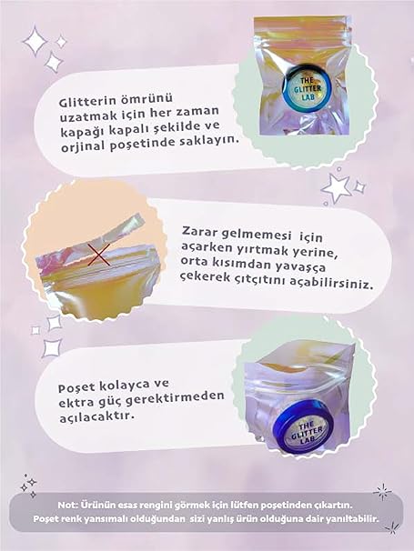 Su bazlı parıltılı jel hipoalerjeniktir. Yüksek kalitede pigmentler kullanılan bu glitterlar, baz veya yapıştırıcı gerektirmez.