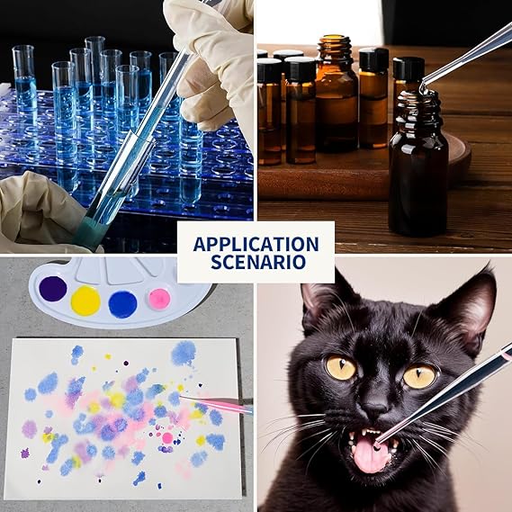 Geniş Uygulamalar Transfer Pipetleri: soyut resimde kullanmak, küçük evcil hayvanları beslemek, uçucu yağları, oje çıkarıcıları ve diğer güzellik ürünlerini ölçmek ve aktarmak için mükemmeldir.