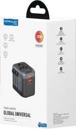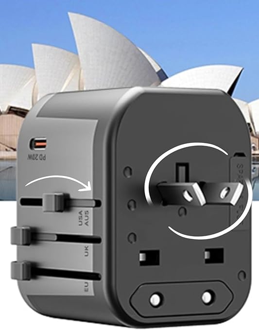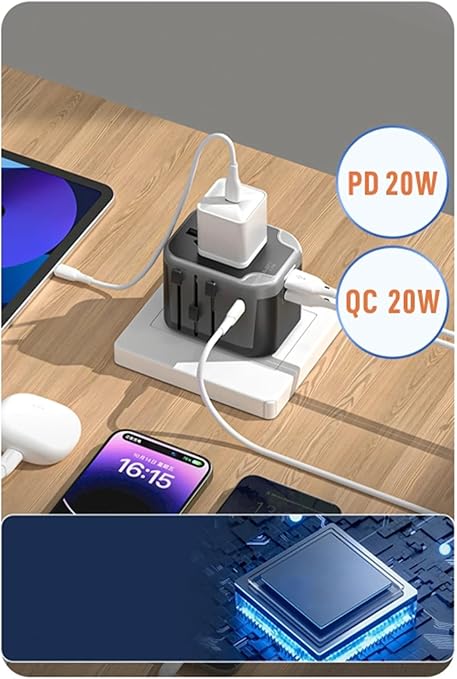 Global Seyahat Adaptörü | 20W PD & 3.0 Hızlı Şarj | 2 USB + 1 USB-C | 100-250V | Döner Fişli | Çoklu Koruma | Kompakt Tasarım | Uluslararası Priz Dönüştürücü