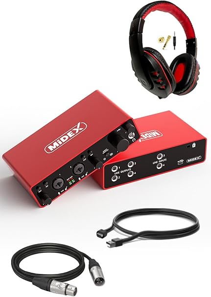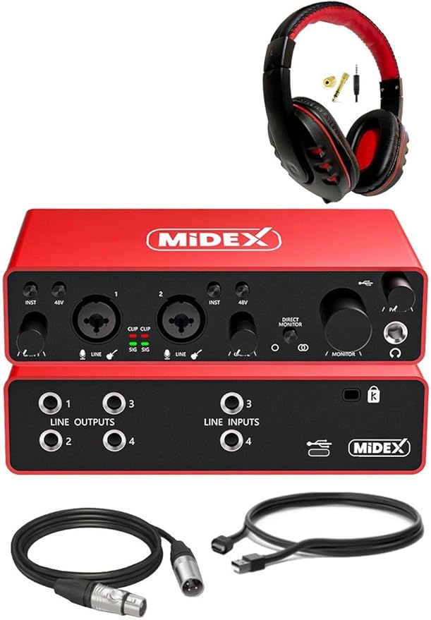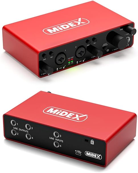 Midex GLX-900HD PRO Üst Segment Usb Stüdyo Ses Kartı 4 Giriş 4 Çıkış (Kulaklık ve Kablo)