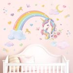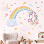 Gökkuşağı Duvar Çıkartmaları Tek Boynuzlu At Bulutlar Soyma ve Yapıştır Duvar Sanatı Çıkartmaları Kız Yatak Odası Çocuk Odası Bebek Odası için
