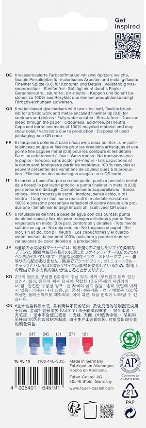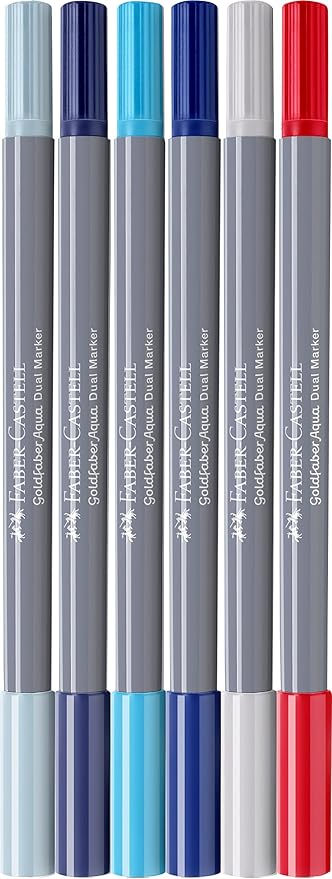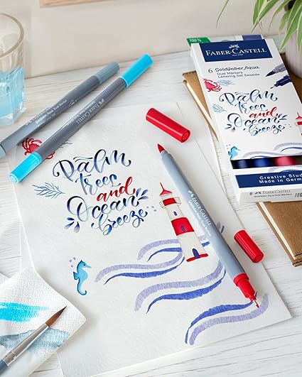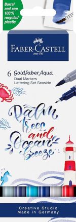 Goldfaber Aqua Çift Uç Markör Kaligrafi 6’lı Seaside, Fırça ve Fineliner, Solmaya Dayanıklı Mürekkep, Çevre Dostu