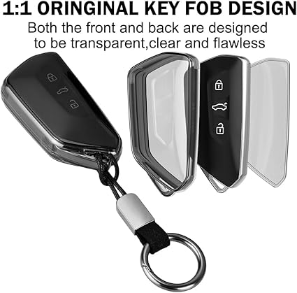 【Uyumluluk】Anahtarlık koruyucu 2020-2022 Golf 8 ID.3 ID.4, Seat Leon Tarraco Ateca, Skoda Octavia, Cupra Formentor Leon 3 düğmeli akıllı anahtarlık uzaktan kumanda ile uyumludur. 1:1 modelleme, araç anahtarının ana hatlarına sıkıca oturarak düğme konumu.