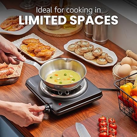 Gourmet ESB100B Tezgah Üstü Tek Sarmal Brülör Elektrikli Sıcak Plaka, Sıcaklık Kontrolü, Gösterge Işığı, Temizlemesi Kolay, Siyah
