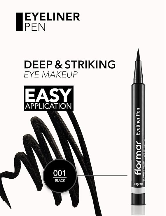 Gözlerinin belirgin ve daha canlı görünmesini istiyorsan Flormar Eyeliner Pen seninle! Yoğun siyahlık sunan Eyeliner Pen ince keçe ucu sayesinde kolaylıkla uygulanıyor