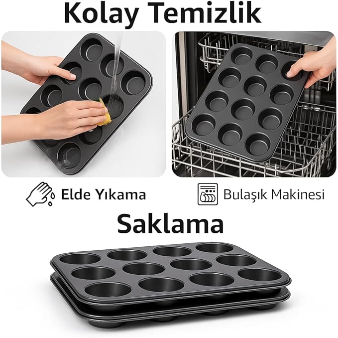 ✅ 12 Gözlü Pratik Tasarım: Aynı anda 12 adet muffin veya cupcake hazırlamanızı sağlar.