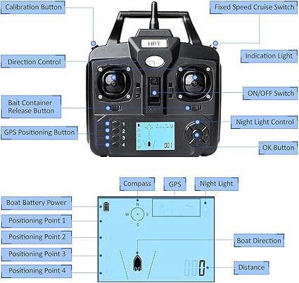 GPS işlevi, 16 keyfi konumlandırma noktası ayarlamanıza yardımcı olur ve tekne, ayarladığınız noktaya göre ileri geri hareket edebilir.