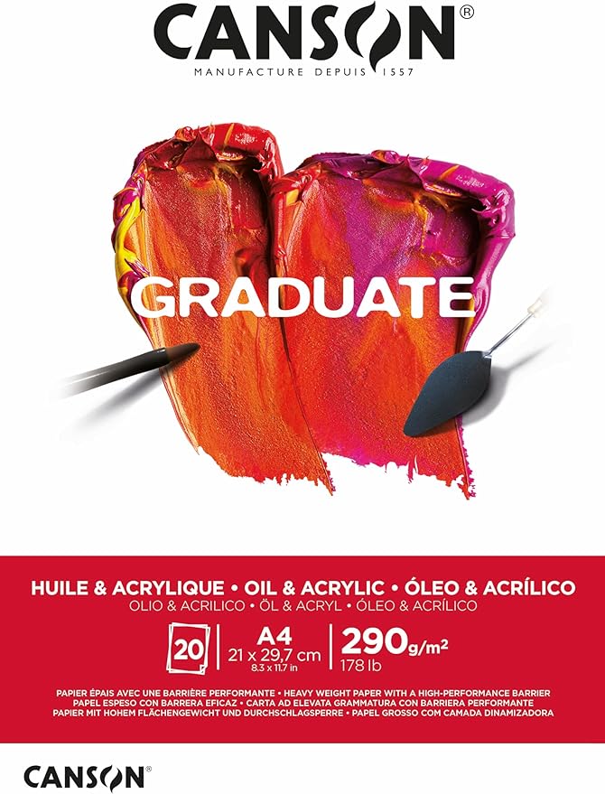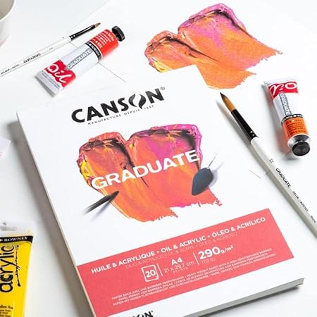 Graduate, yağlı ve akrilik boya kağıdı, hafif pürüzlü yüzey, 290 g/m², kısa kenarda yapıştırılmış blok, DIN A4 21 x 29,7 cm, doğal beyaz, 20 yaprak