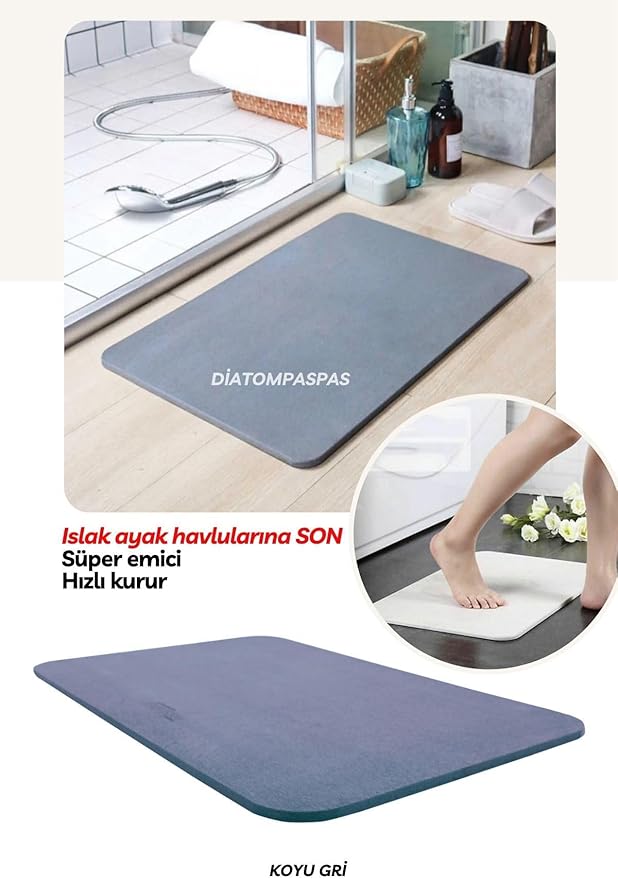 Yıldızhane Koyu Gri Diatom Süper Emici Sihirli Hijyenik Paspas Diatomite Mat Diatom Banyo Paspası 600*390*9 KG