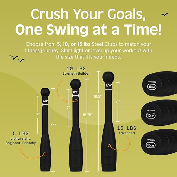 ÇOK FONKSİYONLU: Retrospec çelik kulüpleri, güç eğitiminden rehabilitasyona kadar çeşitli egzersizler için çok yönlüdür. Doğru kullanımla, ağır bir kulüp esnekliği, gücü artırabilir ve egzersizler arasındaki iyileşme rutinlerine yardımcı olabilir.