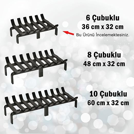 GROUP 36 cm x 32 cm 6 Çubuklu Ekstra Şömine Izgarası Dar Gözlü Izgara
