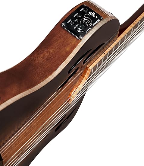 Masif Okoume gövde Akasya üst kısım Okoume sap Defne klavye ve köprü Ortega 12 delikli köprü Kemik eşik TourPlayer taşıma çantası dahildir