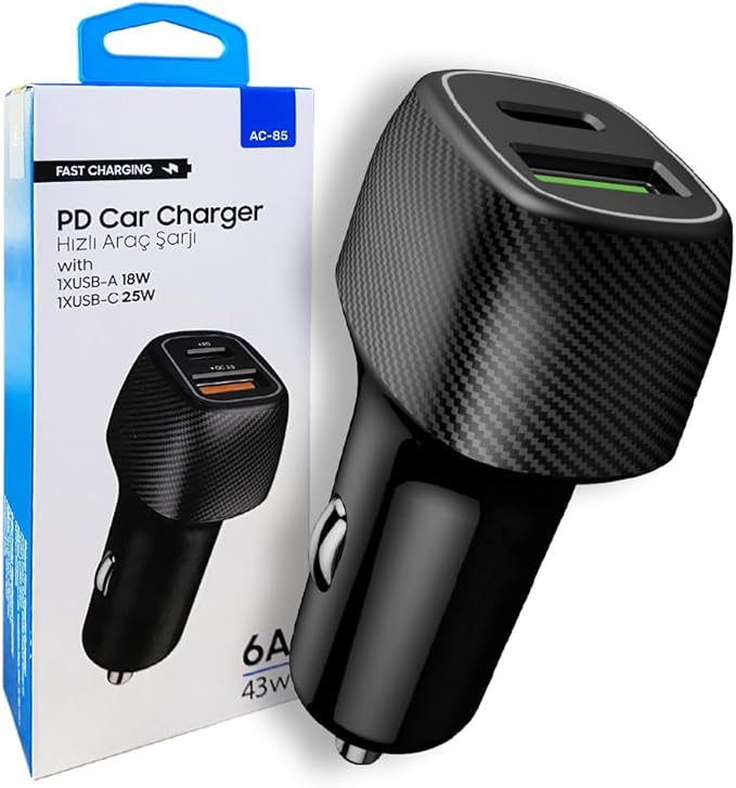 GüncelÇarşı Ac-85 Pd Quick Charge 3.0 Usbx2 6A 38 Watt Araç içi Hızlı Şarj Aleti Type C Girişli Araç Şarjı, Destomedya