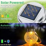【Dayanıklı birinci sınıf solar cam】Güneş enerjili bahçe lambaları buz kırığı imitasyon teknolojisini kullanır, benzersiz çatlak cam tasarımı ışık geçirgenliğini iyileştirir ve parlak bir parlaklıkta ışıldar. Entegre ışık zinciri 30 yüksek kaliteli sıcak beyaz LED lambadan oluşur. Bir halat sapı ile dekore etmek veya teras masasına yerleştirmek istediğiniz her yere asılabilir. Solar lamba diğer solar camlardan daha yüksek lümene sahiptir.