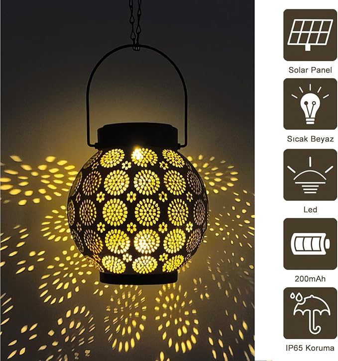 Güneş Enerjili Dekoratif Led Fener / Askılı Bahçe Feneri / Bahçe Dekorasyon Feneri / GT-SL25R