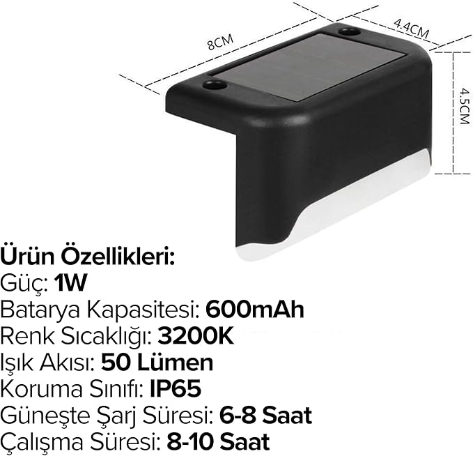 Güneş Enerjili Su Geçirmez 4’lü Bahçe, Merdiven, Veranda için Köşebent Led Lamba 3200K Günışığı (Standart, Adet, 8)