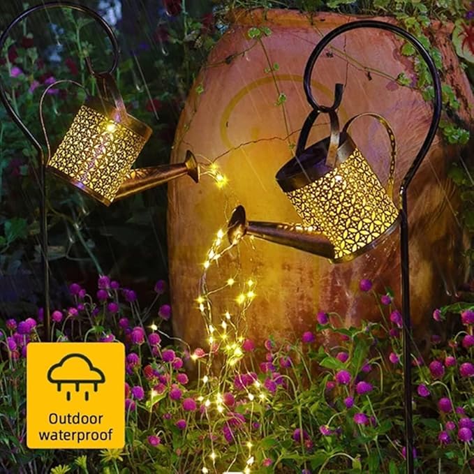Güneş Enerjili Sulama Kabı LED Şelale Işık | Metal Standlı Tasarım (80 cm) | IP65 Su Geçirmez Bahçe Peri Işıkları | 5W Solar Dış Mekan Dekoratif Aydınlatma | Balkon Veranda Patika Lambası