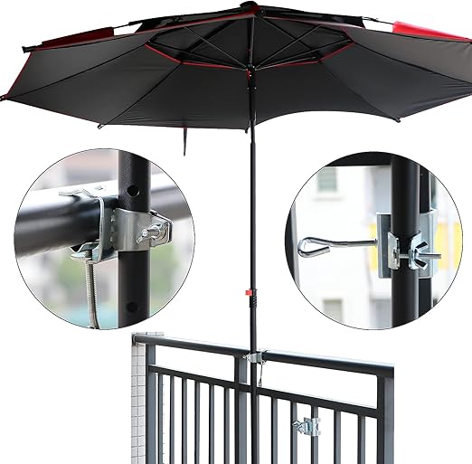 Evrensel: Bahçe şemsiyeleri için bu masa mandalı hem dikey hem de yatay monte edilebilir ve böylece tüm balkon korkulukları veya masalar için uygundur!