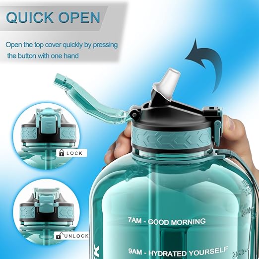 【İşlevsel】Açılır kapak güvenli bir kilitle tasarlanmıştır, böylece toz ve sızdırmaz. Kolay içmek için musluğu tek elle açın. Dişlerinizi korumak için silikon açılır pipetle donatılmıştır. Yumuşak dayanıklı silikon nozul, dökülmeye karşı dayanıklı yudumlamanın veya hızlı su akışının kolayca tadını çıkarmanızı sağlar