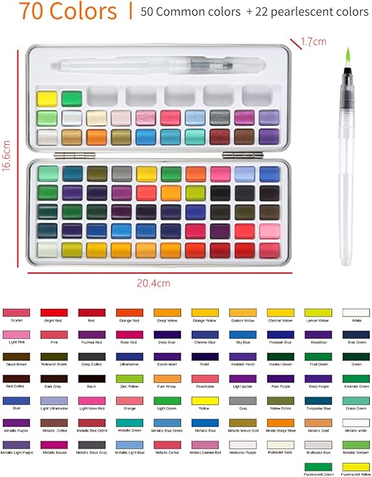 H & B Sulu Seti 72 Renkler Profesyonel Sanat Malzemeleri ile Sulu Fırça Kalem Sanatçılar Yeni Başlayanlar Öğrenciler Yetişkinler için Çizim ma Taşınabilir Sanat ma
