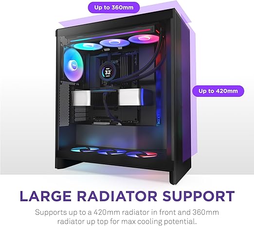 H7 Flow RGB | RGB fanlı orta kule ATX hava akışı muhafazası | doğrudan GPU soğutma için zeminde fan destekler | 360 mm RGB tek çerçeveli fan | kablo yönetimi | siyah