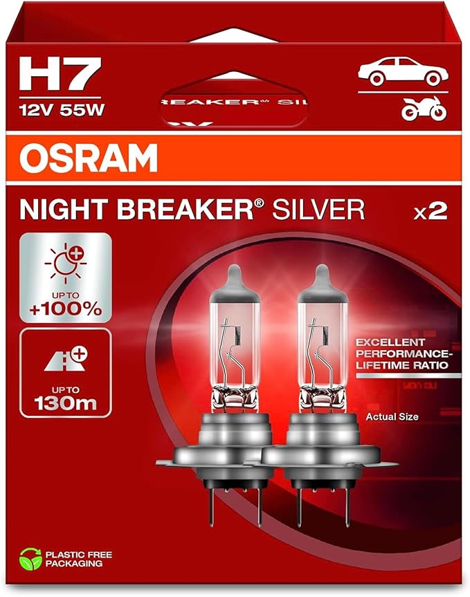 H7 Night Breaker Silver Far Ampulü, 12V 55W, 2’li Paket,%100 Daha Fazla Işık, 130m Mesafe