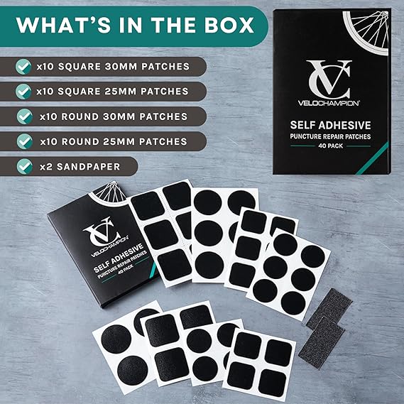 ✅VELOCHAMPION ONARIM YAMALARIMIZ NASIL KULLANILIR – 1️➤ Delinmeyi bulun ve kir ve su alanını temizleyin. 2️ İç boruyu hafifçe çizmek için zımpara kağıdını kullanın, böylece tutkalı daha sonra yapıştırabilirsiniz. 3️ VeloChampion Onarım Yamasının arkasındaki beyaz kağıdı çıkarın ve iç tüp delinme alanına uygulayın. 30 saniye boyunca basınç uygulayın. Serbest bırakıldıktan sonra yamanın iç tüpe bağlanması için 30 saniye daha bekleyin. İç tüpünüzü şişirin ve gitmeye hazırsınız.