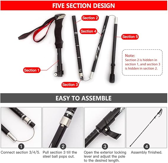 Hafif Katlanabilir Trekking -Katlanabilir Yürüyüş Bastonu Yürüyüş Kamp Sırt Çantasıyla Seya İçin Kırmızı