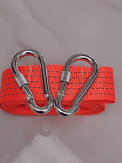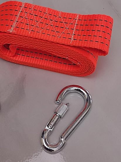 Halatı 3 Ton 5 M (ÇEKME HALATI) Kumaş 10 MM VİDALI METAL ÇENGELLİ Karabinalı, Turuncu KUMAŞ Çeki Halatı, 5 Cm genişlik 2mm, yüksek Dayanıklı, Çelik Uçlu Araba Çekme, oto çeki