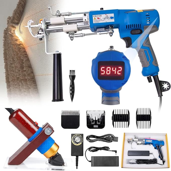 Halı Kesme Kitli Halı Tufting Tabancası, Hız Göstergeli Halı Püskül Tabancası, 2’si 1 Arada Kesim Döngüsü Kazık Halı Tabancası, Işıklı Halı Yapma Seti
