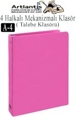 Halkalı Klasör 1 Adet A4 PVC Öğrenci ve Ofis Tipi Evrak Sunum Klasörü İç Cepli Otomatik Mekanizmalı Büro Okul Arşivle Pembe