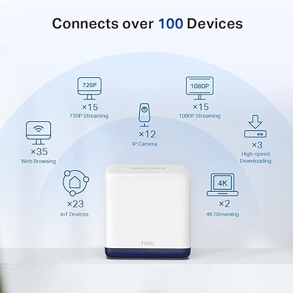 1.9 Gbps Dual Band WiFi – Halo H50G, 1.900 Mbps’ye varan hızlarda 100’den fazla cihaz için hızlı ve kararlı bağlantılar sağlar ve büyük internet servis sağlayıcıları (ISS’ler) ve modemlerle çalışır.